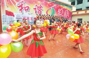 昨日上午,玉州区古定中心小学里鼓乐阵阵,喜气洋洋,该校举行建校105周年庆祝活动。升国旗、唱校歌、文艺汇演,师生们献上精心编排的情景歌舞、快板表演唱、诗朗诵、老师礼仪风采展、联唱……节目欢快热烈,激情飞扬,充分展示学校和谐、进取的精神风貌。