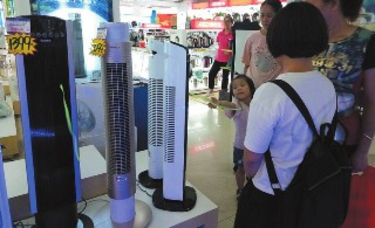 | 			夏日“冷”家电热销    记者在工业品市场发现,各大家电专卖店均把落地扇、空调扇等电器摆放在店面中央,甚至是店门外最显眼的位置,部分商家还贴上非常醒目的“促销”标签,价格从几百到上千元不等。“家里的风扇坏了,晚上热得睡不着,装空调又太贵,暂时舍不得装,就想着买一台落地扇。”在一家电器经销部,市民陈先生正在挑选风扇,他的挑选标准是节能、价格适中。据店家介绍,价位在70元至200元的落地扇最受市民青睐,消费者购买此类产品主要是家用,部分上班族也会购买;而一些小风扇、小吊扇,购买人群多是学生;水冷空调一般销往游戏厅、网吧、酒吧等娱乐场所。